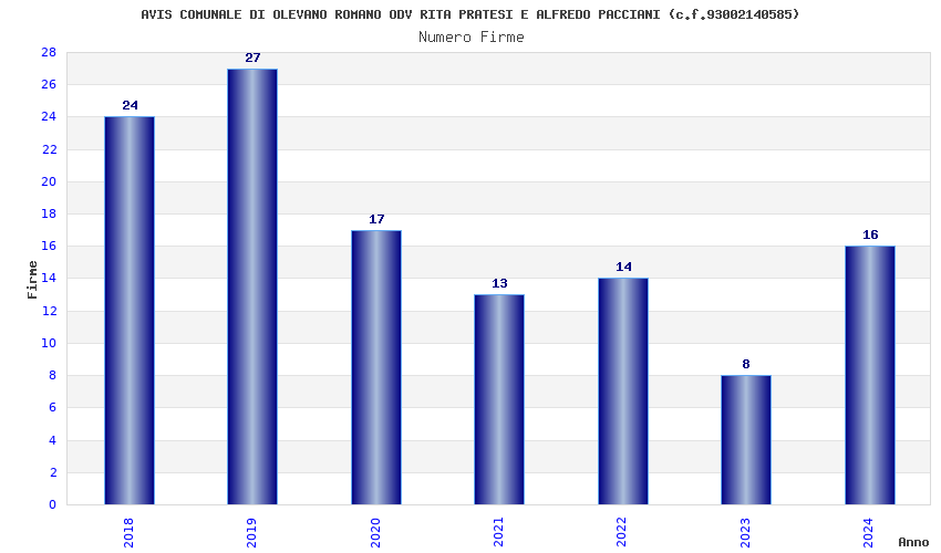 | Anno | Firme | Importi | Media | Naz. | Reg. | Prov. | Comu. |