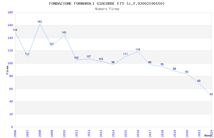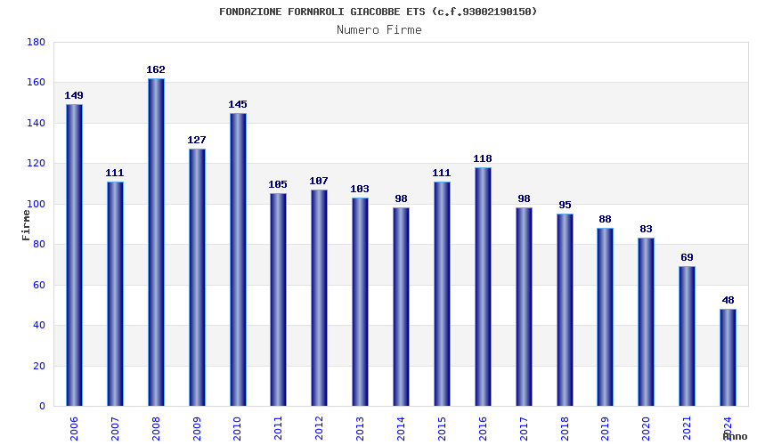 | Anno | Firme | Importi | Media | Naz. | Reg. | Prov. | Comu. |