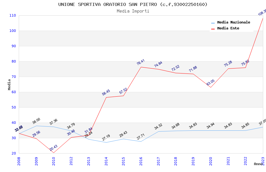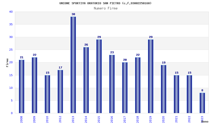 | Anno | Firme | Importi | Media | Naz. | Reg. | Prov. | Comu. |