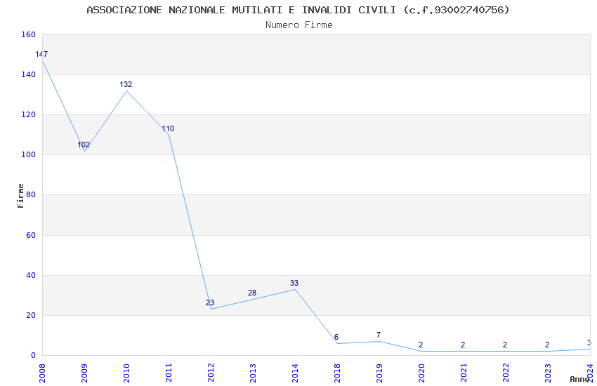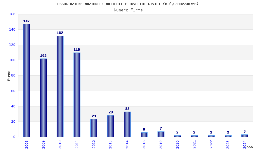 | Anno | Firme | Importi | Media | Naz. | Reg. | Prov. | Comu. |