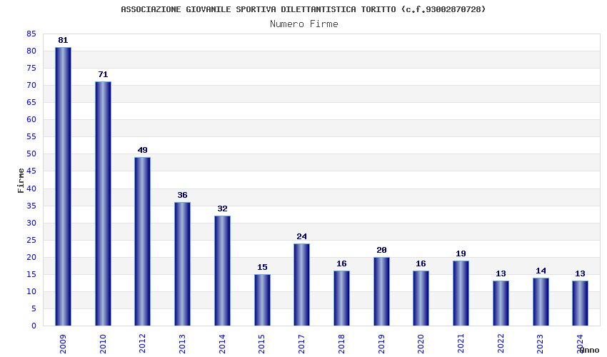 | Anno | Firme | Importi | Media | Naz. | Reg. | Prov. | Comu. |