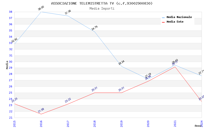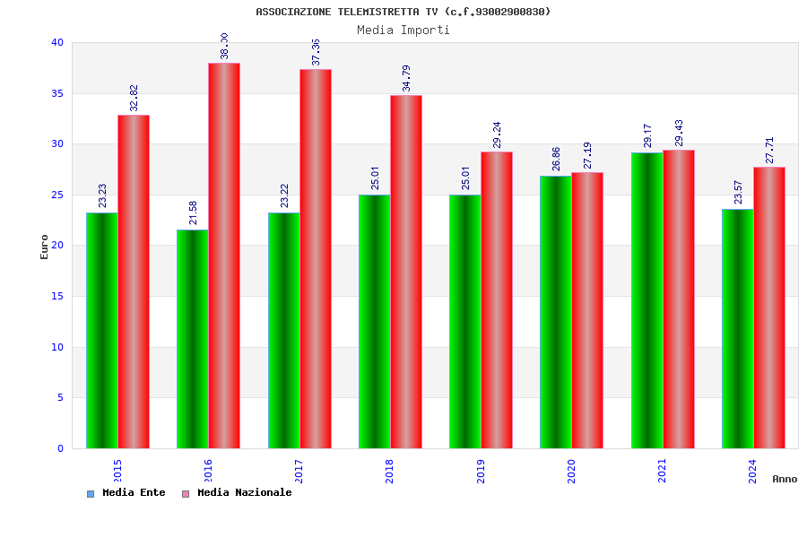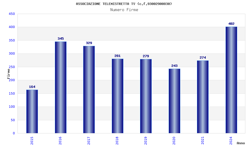 | Anno | Firme | Importi | Media | Naz. | Reg. | Prov. | Comu. |