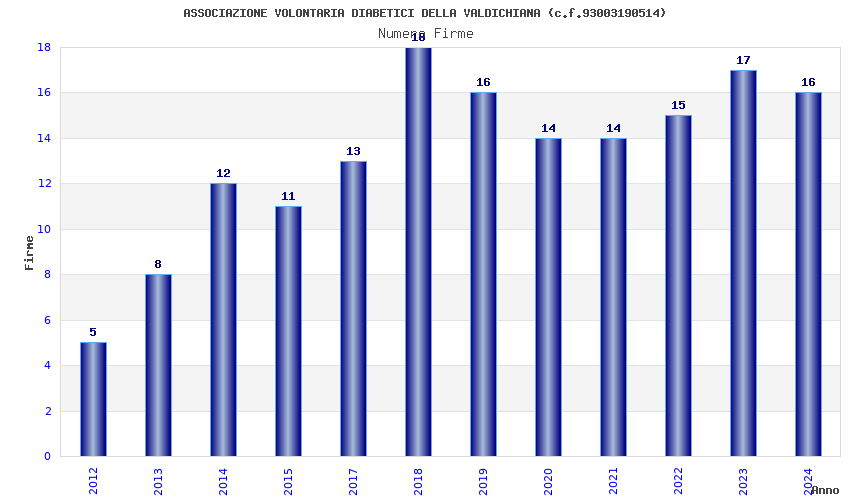 | Anno | Firme | Importi | Media | Naz. | Reg. | Prov. | Comu. |