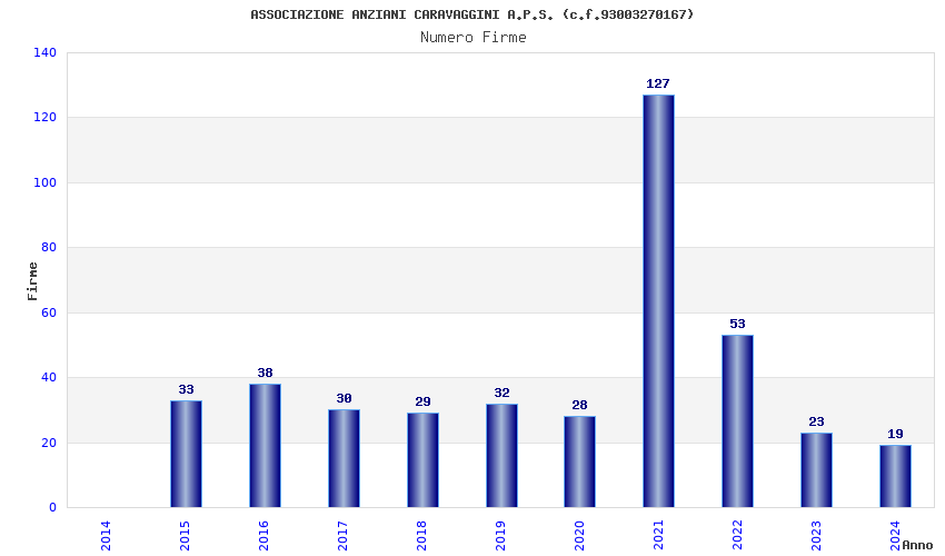 | Anno | Firme | Importi | Media | Naz. | Reg. | Prov. | Comu. |