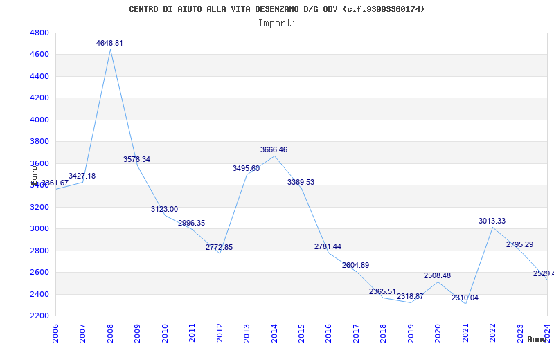 | Anno | Firme | Importi | Media | Naz. | Reg. | Prov. | Comu. |