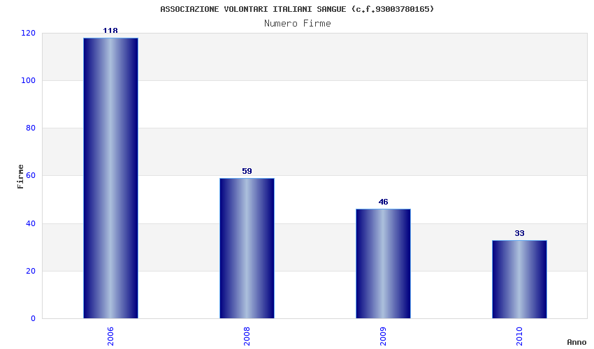 | Anno | Firme | Importi | Media | Naz. | Reg. | Prov. | Comu. |