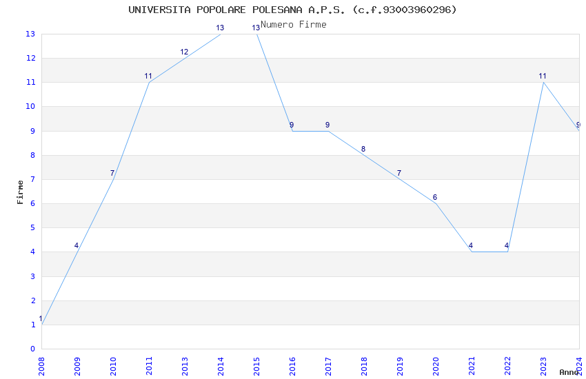 | 2015 | 13 | 296,33 | 22,79 | 44.075 | 4.045 | 177 | 61 |