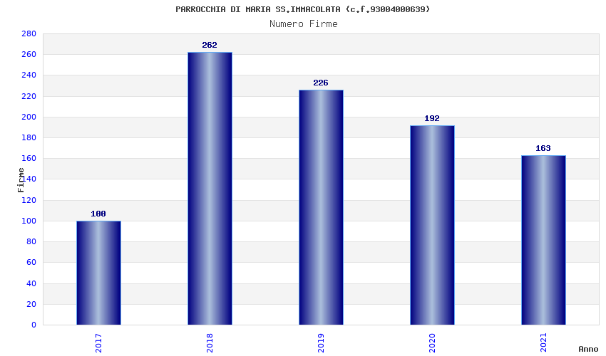 | Anno | Firme | Importi | Media | Naz. | Reg. | Prov. | Comu. |
