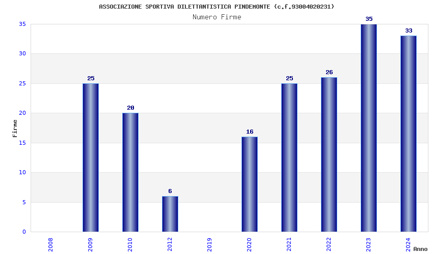 | Anno | Firme | Importi | Media | Naz. | Reg. | Prov. | Comu. |
