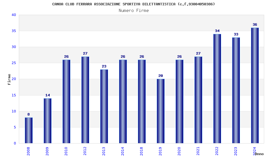| Anno | Firme | Importi | Media | Naz. | Reg. | Prov. | Comu. |