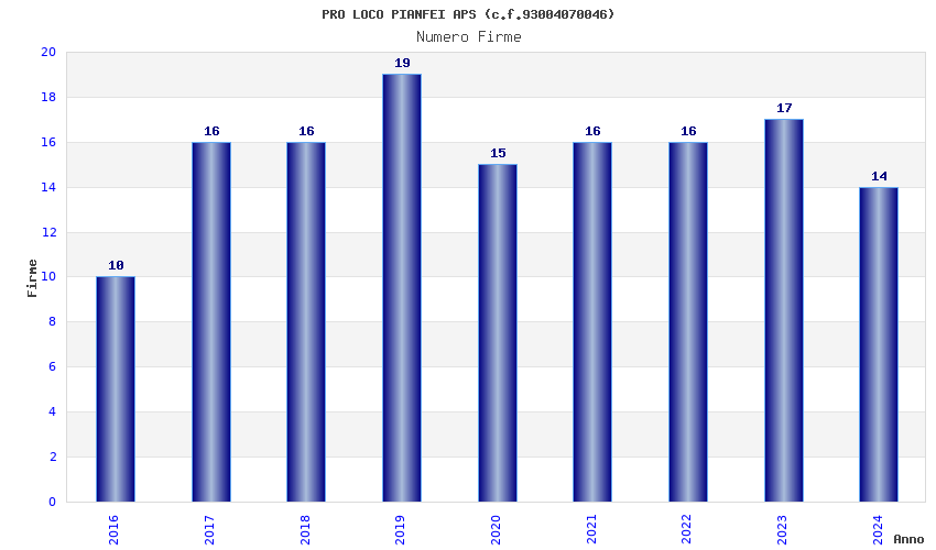 | Anno | Firme | Importi | Media | Naz. | Reg. | Prov. | Comu. |