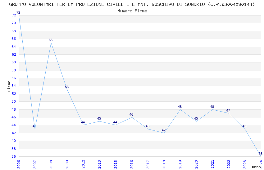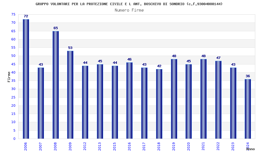| Anno | Firme | Importi | Media | Naz. | Reg. | Prov. | Comu. |