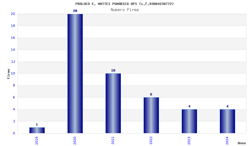 | Anno | Firme | Importi | Media | Naz. | Reg. | Prov. | Comu. |