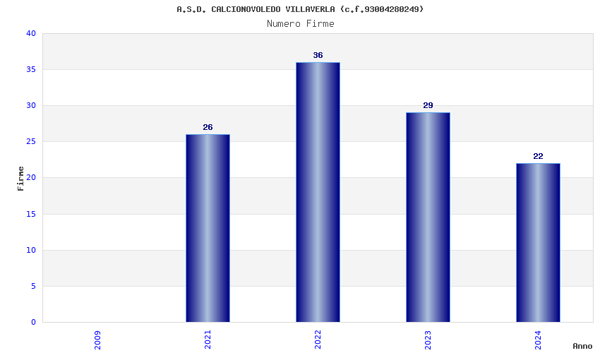 | Anno | Firme | Importi | Media | Naz. | Reg. | Prov. | Comu. |