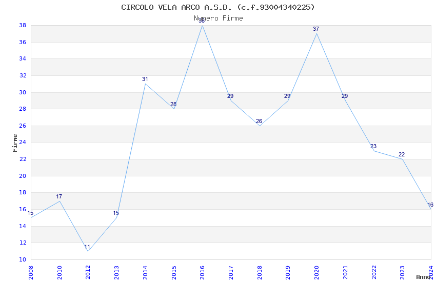 | 2016 | 38 | 1.837,84 | 48,36 | 23.948 | 694 | 340 | 14 |