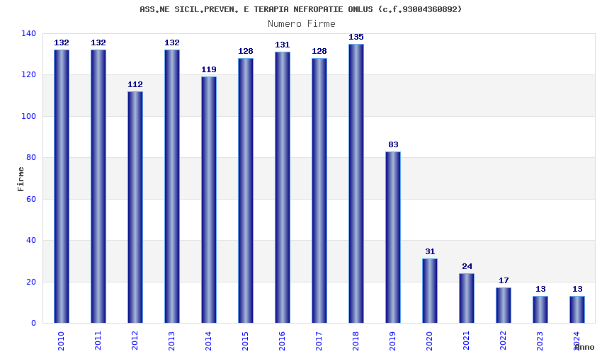 | Anno | Firme | Importi | Media | Naz. | Reg. | Prov. | Comu. |