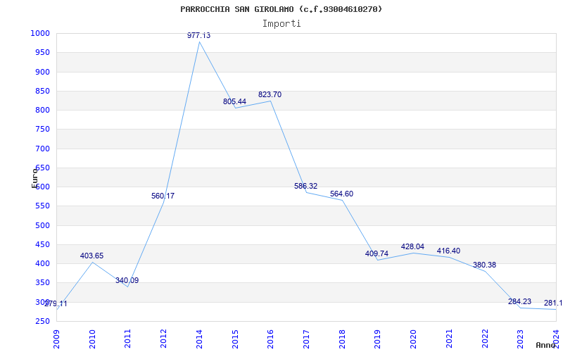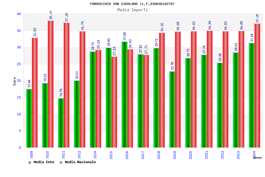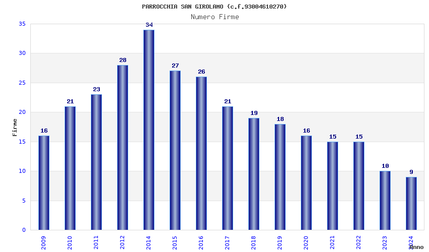 | Anno | Firme | Importi | Media | Naz. | Reg. | Prov. | Comu. |