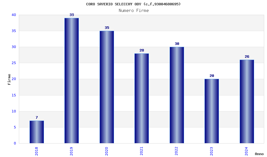 | Anno | Firme | Importi | Media | Naz. | Reg. | Prov. | Comu. |