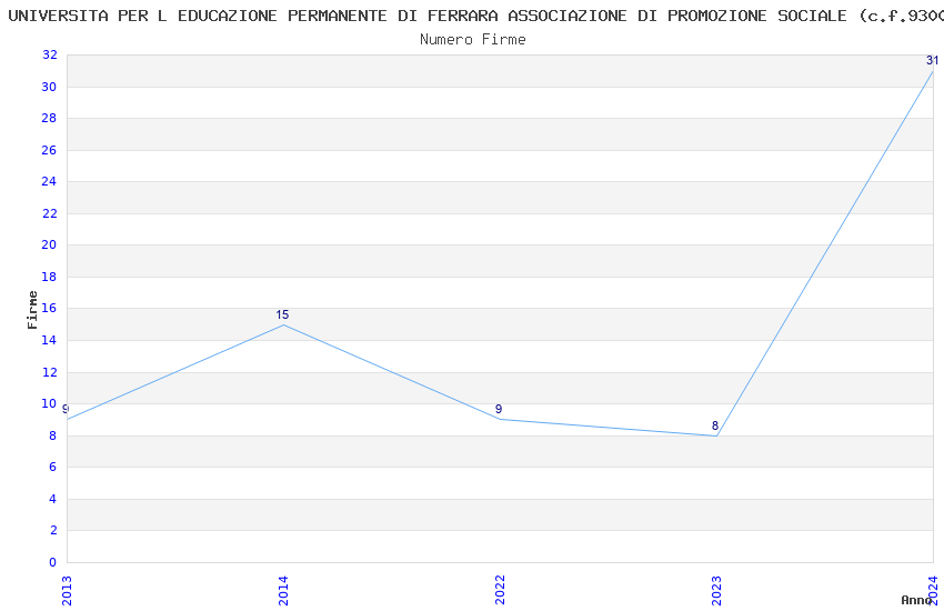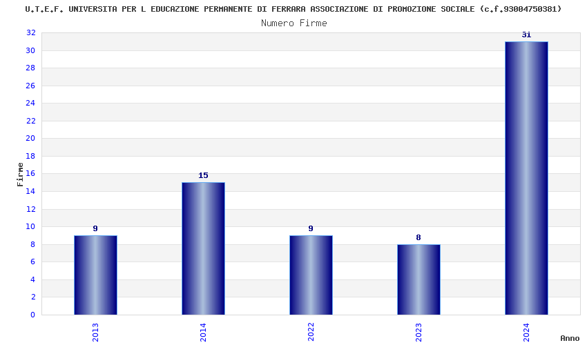 | Anno | Firme | Importi | Media | Naz. | Reg. | Prov. | Comu. |