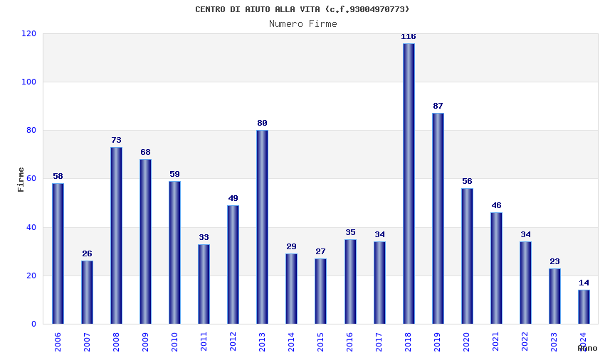 | 2018 | 116 | 2.772,98 | 23,91 | 18.660 | 134 | 40 | 22 |