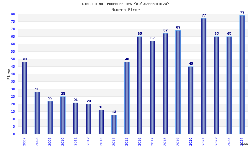 | 2024 | 79 | 3.258,27 | 41,24 | 16.197 | 3.521 | 453 | 3 |