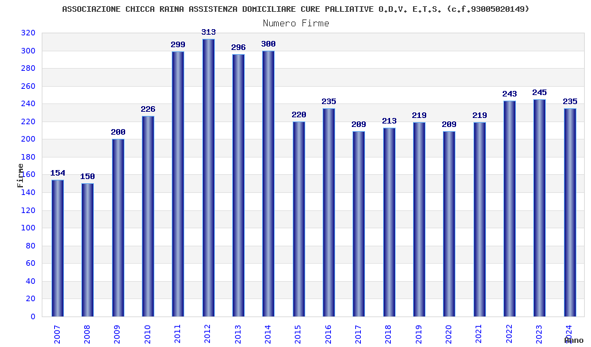 | Anno | Firme | Importi | Media | Naz. | Reg. | Prov. | Comu. |