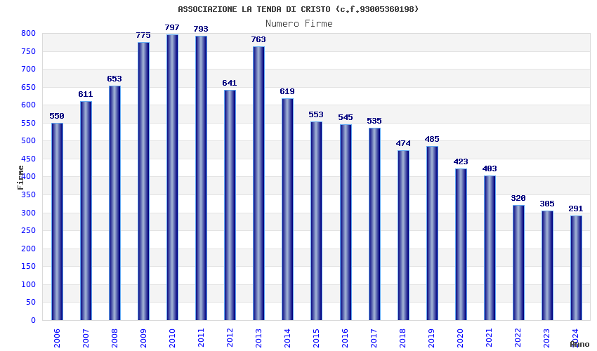 Anno Firme Importi Media Naz. Reg. Prov. Comu.