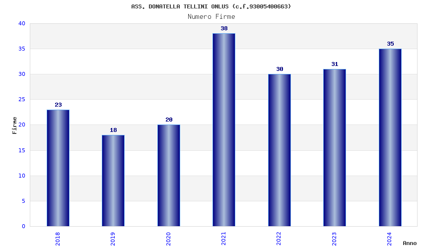 | Anno | Firme | Importi | Media | Naz. | Reg. | Prov. | Comu. |