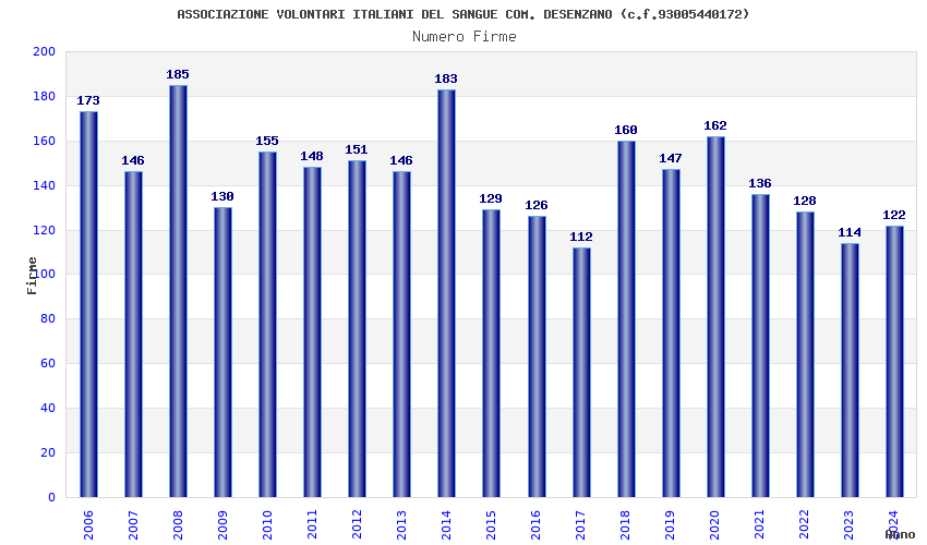 | Anno | Firme | Importi | Media | Naz. | Reg. | Prov. | Comu. |