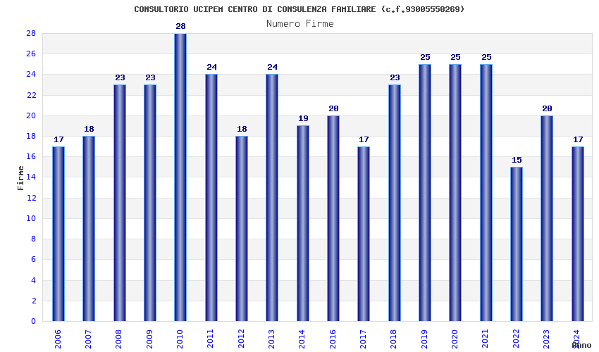 | Anno | Firme | Importi | Media | Naz. | Reg. | Prov. | Comu. |