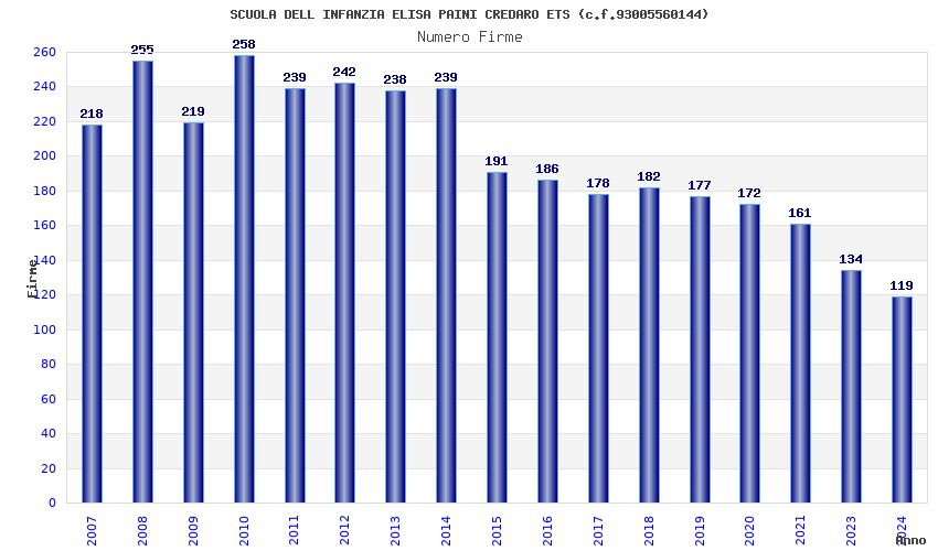 | Anno | Firme | Importi | Media | Naz. | Reg. | Prov. | Comu. |