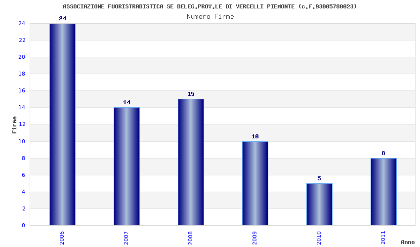 | Anno | Firme | Importi | Media | Naz. | Reg. | Prov. | Comu. |