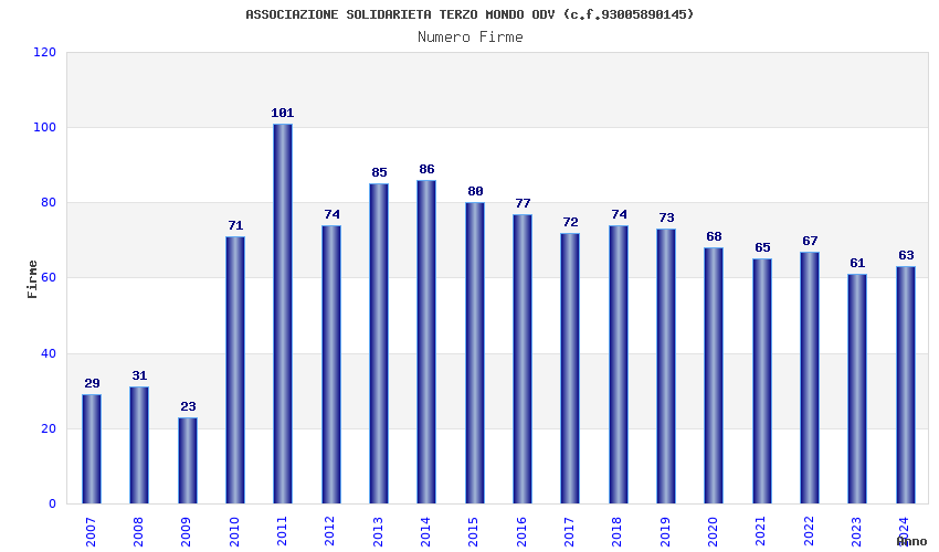 | Anno | Firme | Importi | Media | Naz. | Reg. | Prov. | Comu. |
