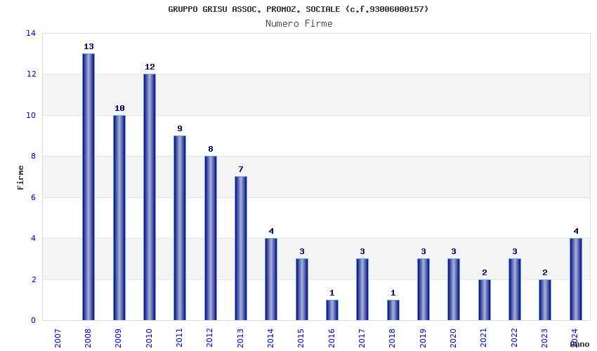 | Anno | Firme | Importi | Media | Naz. | Reg. | Prov. | Comu. |