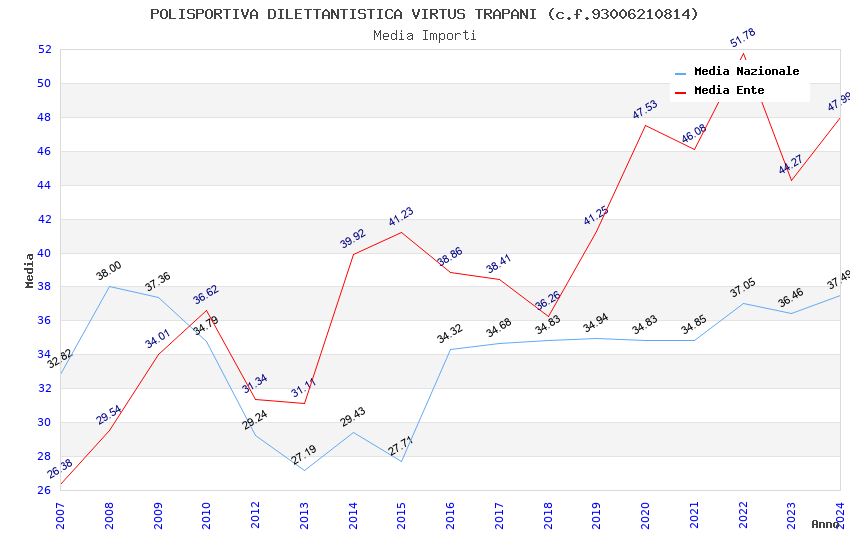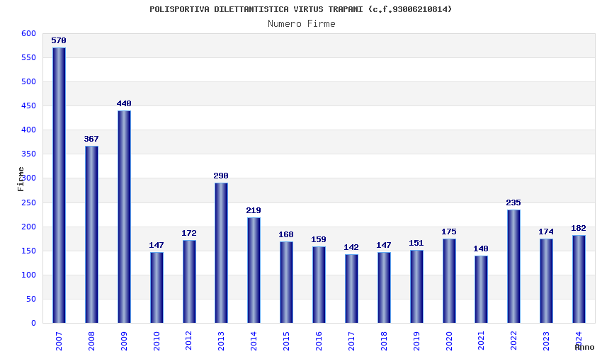| Anno | Firme | Importi | Media | Naz. | Reg. | Prov. | Comu. |
