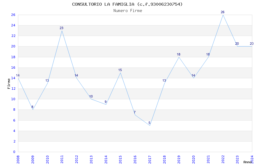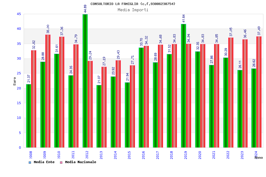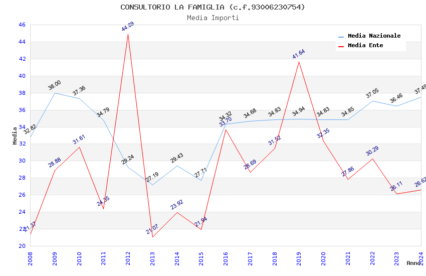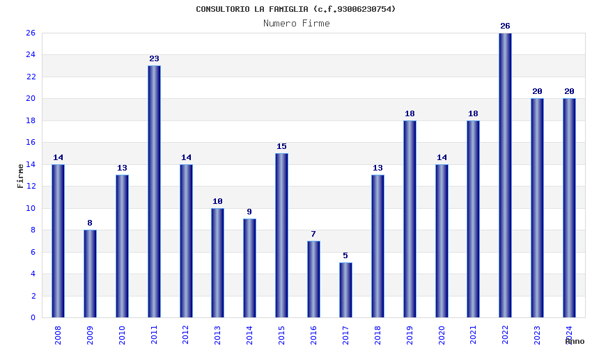 | Anno | Firme | Importi | Media | Naz. | Reg. | Prov. | Comu. |