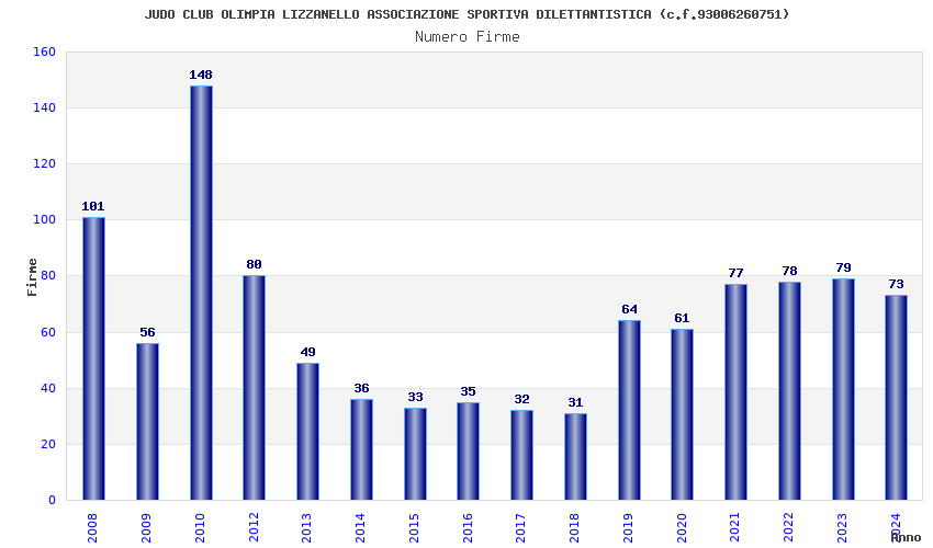| 2024 | 73 | 2.262,21 | 30,99 | 21.901 | 1.174 | 214 | 4 |
