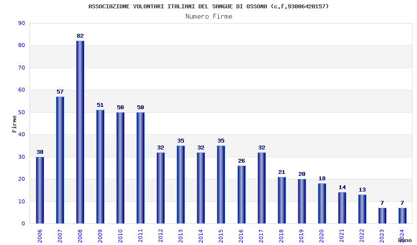 | Anno | Firme | Importi | Media | Naz. | Reg. | Prov. | Comu. |