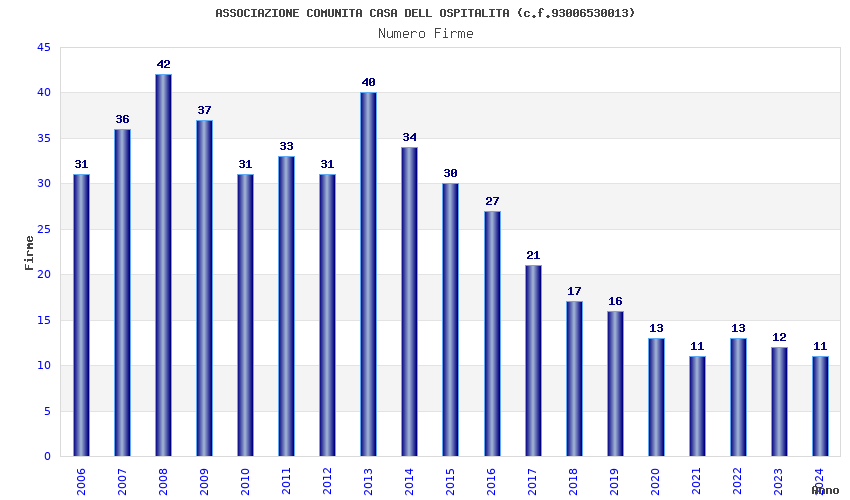 | Anno | Firme | Importi | Media | Naz. | Reg. | Prov. | Comu. |