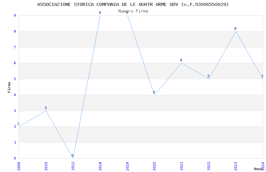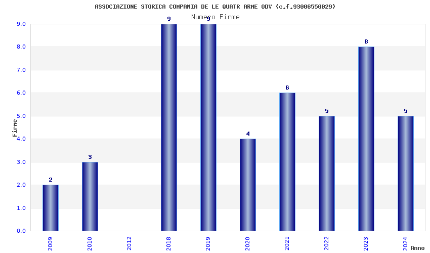 | Anno | Firme | Importi | Media | Naz. | Reg. | Prov. | Comu. |