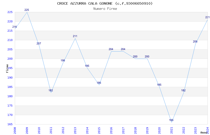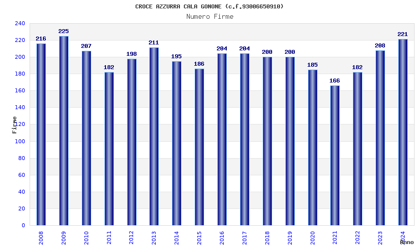 | 2024 | 221 | 3.619,68 | 16,38 | 14.738 | 251 | 26 | 2 |