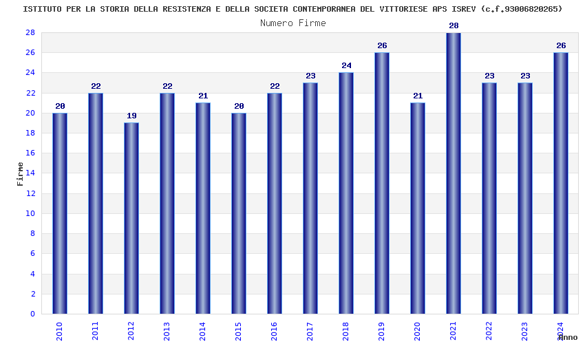 | Anno | Firme | Importi | Media | Naz. | Reg. | Prov. | Comu. |