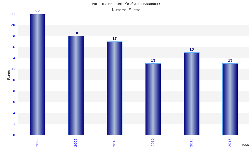| Anno | Firme | Importi | Media | Naz. | Reg. | Prov. | Comu. |
