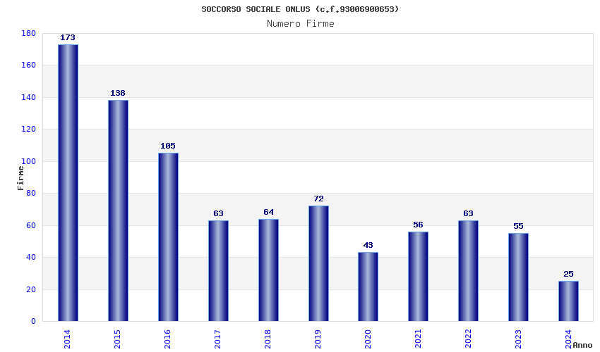 | Anno | Firme | Importi | Media | Naz. | Reg. | Prov. | Comu. |