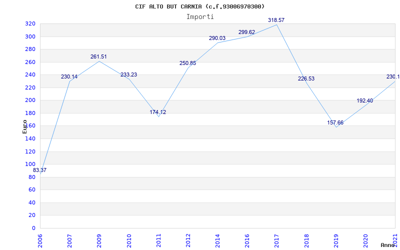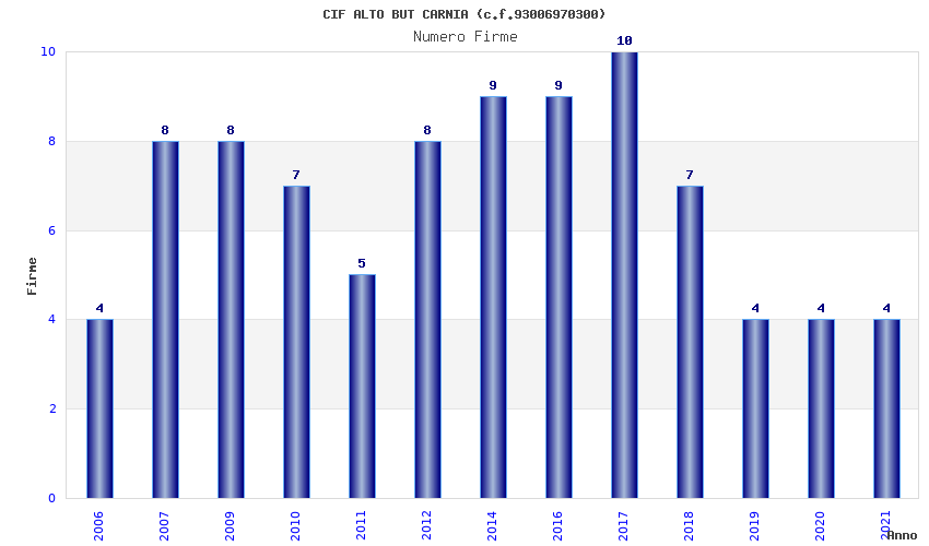 | Anno | Firme | Importi | Media | Naz. | Reg. | Prov. | Comu. |