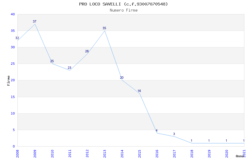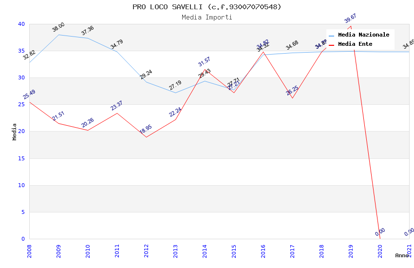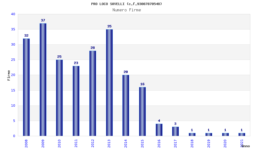 | Anno | Firme | Importi | Media | Naz. | Reg. | Prov. | Comu. |