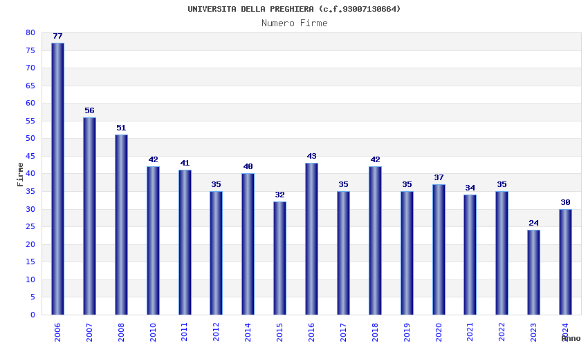 | Anno | Firme | Importi | Media | Naz. | Reg. | Prov. | Comu. |