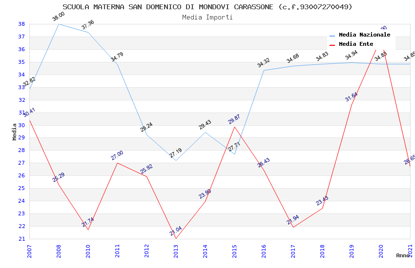 | Anno | Firme | Importi | Media | Naz. | Reg. | Prov. | Comu. |