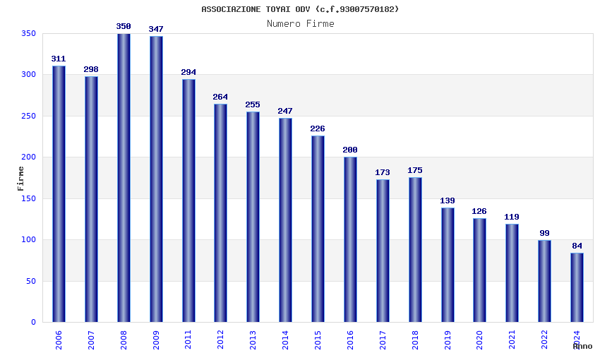 | Anno | Firme | Importi | Media | Naz. | Reg. | Prov. | Comu. |