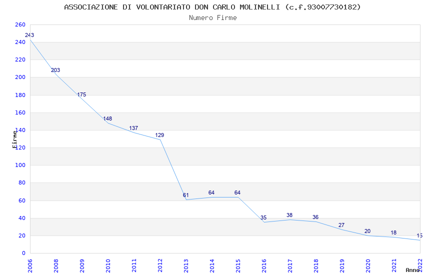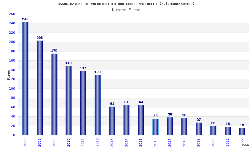 | Anno | Firme | Importi | Media | Naz. | Reg. | Prov. | Comu. |